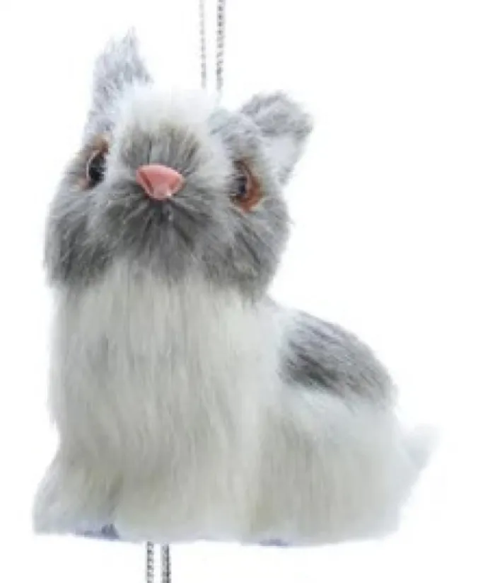 Boutique de Noël Enchanted Forest*Grey And White Furry Bunny Ornament