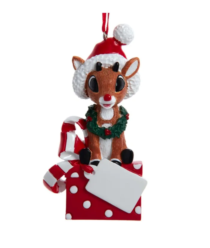 Ornament, Rudolph With Xmas Gift, Can Be Personalised