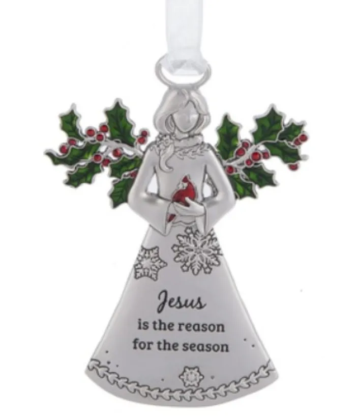 Ornament, Zinc, Angel, “Jesus Is The Reason For The Season”