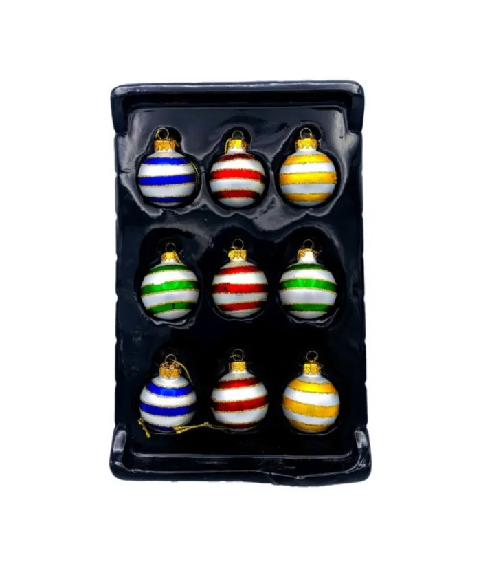 35Mm Striped Glass Ball Ornaments. 9-Piece Box Set.