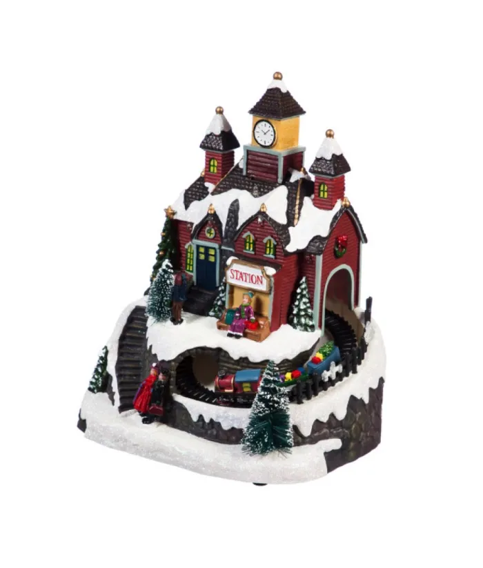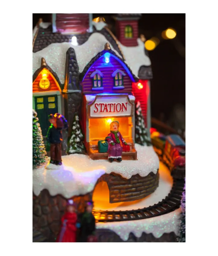 Boutique de Noël Christmas Classics*Table Piece, Animated Mountain Train Station, Led Lighting.