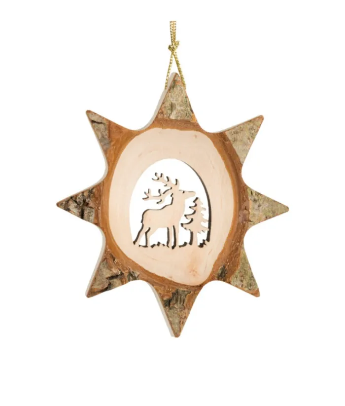 Boutique de Noël Enchanted Forest*German Wooden Ornament, 8 Point Star Shape