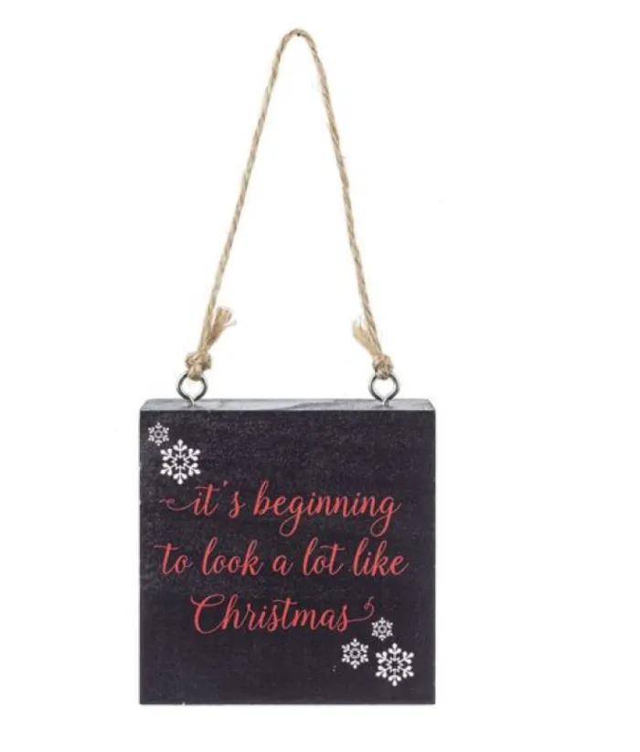 Boutique de Noël Family & Friends*Ornament, Wooden Plaque, With Message “It’S Beginning To Look A Lot Like Christmas”