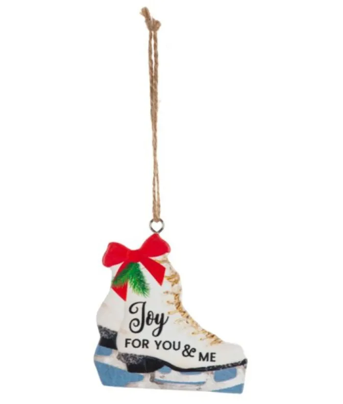 Boutique de Noël Family & Friends*Ornament, Wooden Skate, With Message “Joy, For Me And You”
