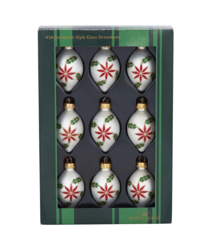 35Mm Poinsettia Miniature Glass Ornaments. 9-Piece Box Set.
