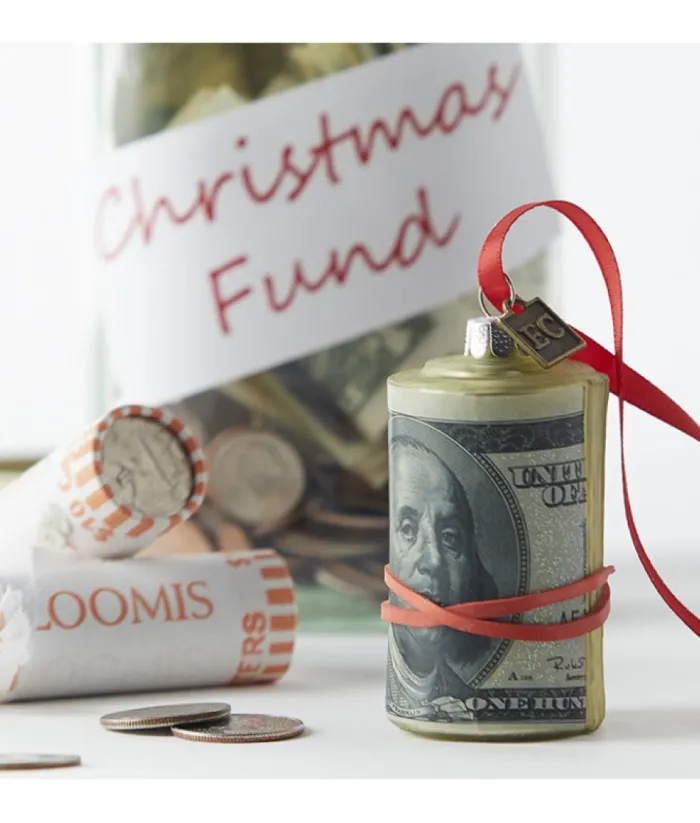 Boutique de Noël Varied Shapes*Roll Of $100 Bills, Glass Ornament