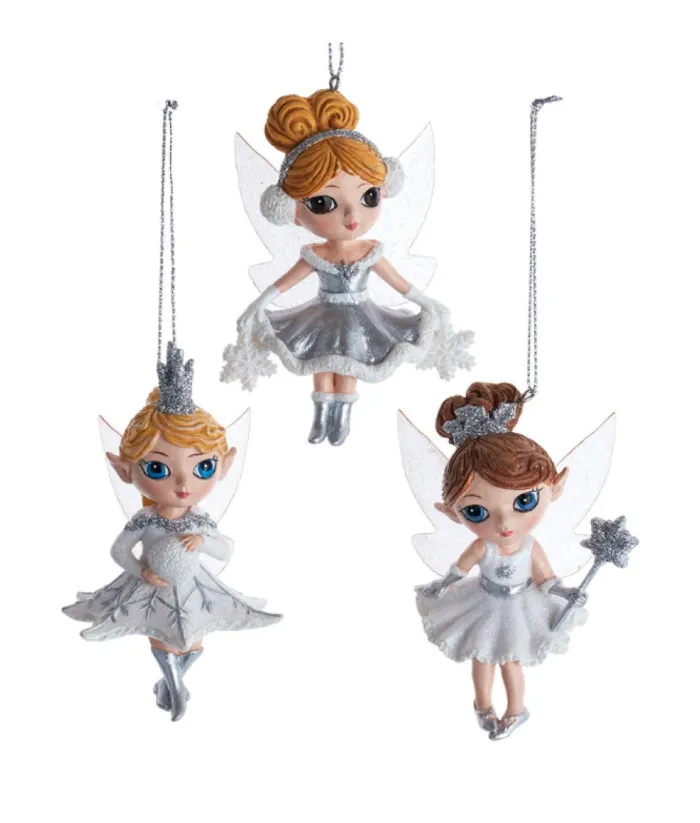 Ornament, Blue Eyed Elvish Child, With Snowball, In Silver And White Colours